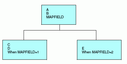 The descendant segment values depend on the value of the MAPFIELD. They are described as separate segments, one for each possible value of MAPFIELD, and all descending from the segment that has the MAPFIELD. A special field, MAPVALUE, is described as the last field in these descendant segments after the ORDER field, if one has been used. The actual MAPFIELD value is supplied as the ALIAS of MAPVALUE.
