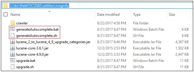 These batch/script programs are located in the drive:\ibi\WebFOCUSxx\utilities\magnify folder of your WebFOCUS installation, as shown in the following image.