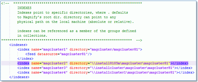 Magnify indexes can be distributed across load balanced or indexed environments, multiple WebFOCUS installs, and mounted drives or across other similar networked devices. This means an index is virtually indexed together by actual indexes residing in multiple locations, with each location being an index that makes up the greater virtual index.