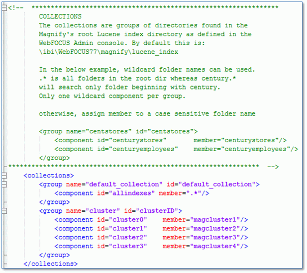 One limitation to using this technique is that WebFOCUS Magnify can still only be configured to a single collection file, meaning that the only way to get to Magnify is through one collection file. This results in mapping pointers to other collection files in order to virtually represent the large single index when distributing indexes.