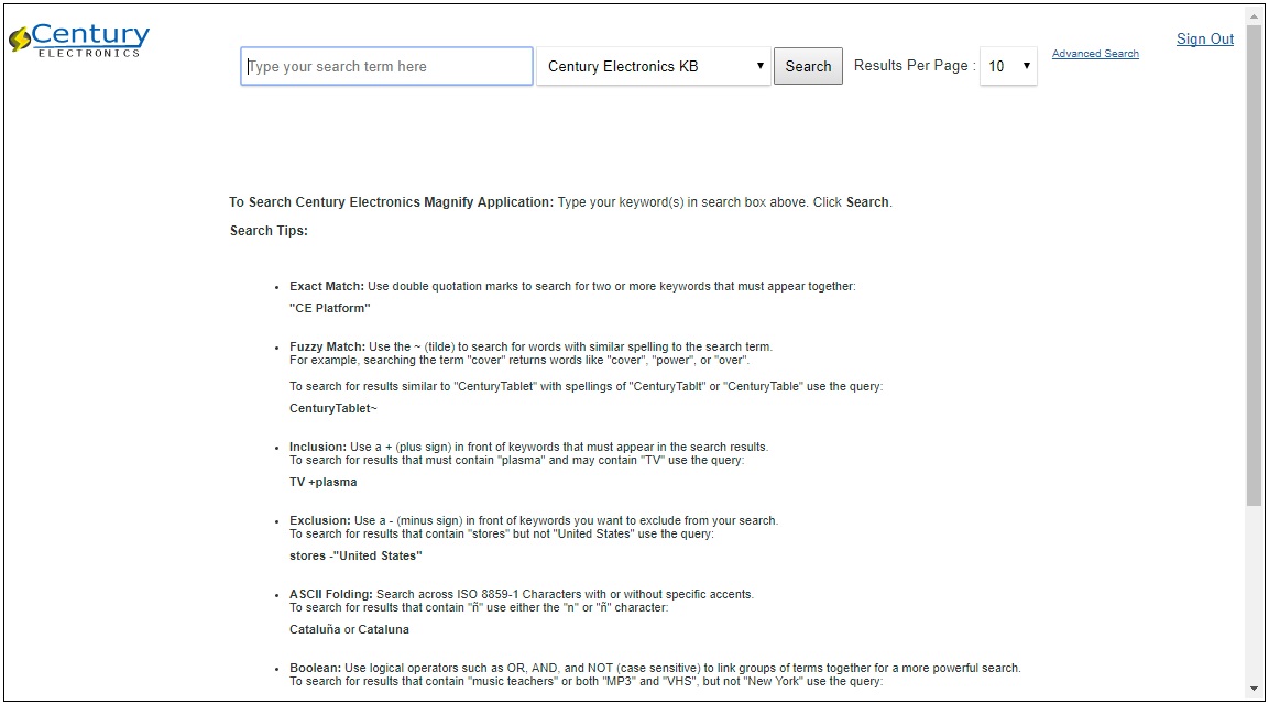 Magnify Search includes a Sign Out hyperlink, located in the upper-right corner of the screen, as shown in the following image.