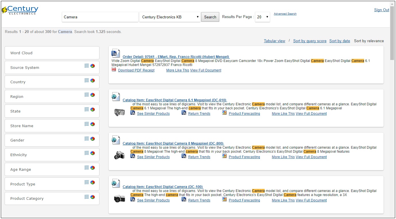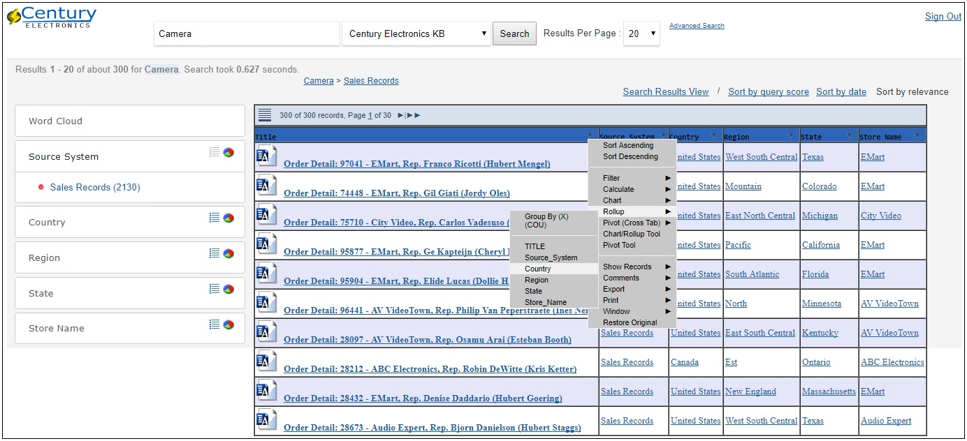 Note: Although only 300 records are returned due to the record limit, there are actually 2,130 records that match the search criteria associated with the Sales Records category under Source System, as shown in the following image.