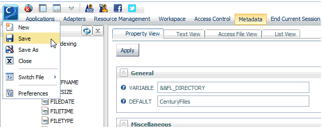 The Property View tab opens in the right pane, as shown in the following image.