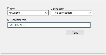Note: If the MAGNIFY engine (case-sensitive) does not display in the list, you must type it in manually. In addition, for connections listed as no connection, you must select no connection in order to activate the SET parameter field. The preceding image shows an Engine entry.