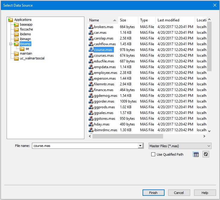 Select the course.mas Master File and click Finish.