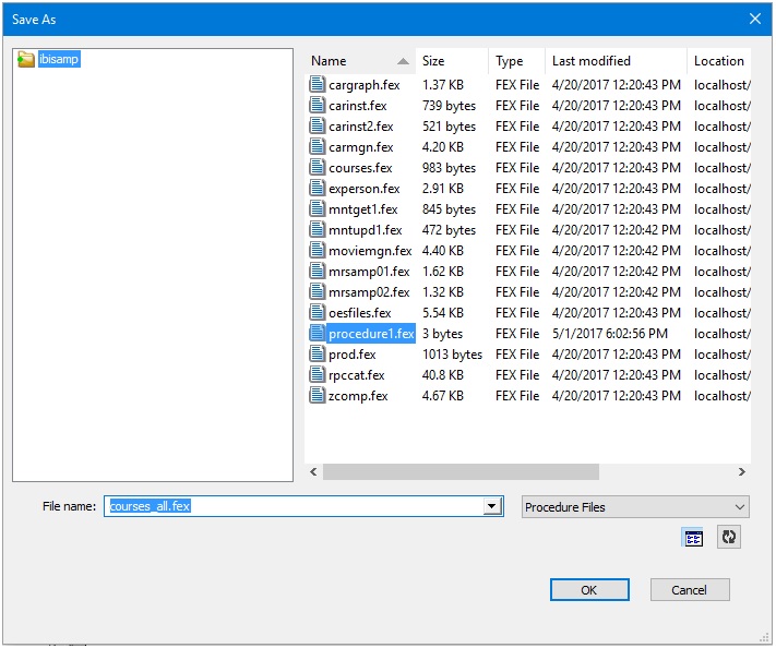 Specify a name for your procedure (for example, courses_transform.fex) and click OK.