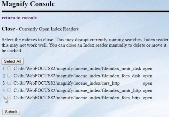 Select an index from the list that is currently open, which you want to close, and click Submit.