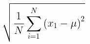If x¡ is an observation, N is the number of observations, and µ is the mean of all of the observations, the formula for calculating the standard deviation for a population is: