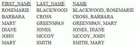 COMPUTE NAME/A40 = LAST_NAME || COMMA1| ' '| FIRST_NAME;
