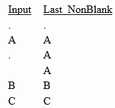 TABLE FILE baseapp/INPUT1 PRINT FIELD_1 AS Input COMPUTE Last_NonBlank/A1 MISSING ON = LAST_NONBLANK(FIELD_1); ON TABLE SET PAGE NOLEAD ON TABLE SET STYLE * GRID=OFF,$ ENDSTYLE END