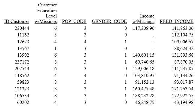 COMPUTE PRED_INCOME/D12.2 = RF_REGRESS(' ',100,