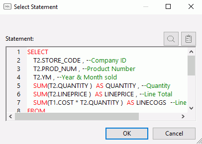 Note: You can also test the SQL by right-clicking the SQL object, selecting Column Selection, and clicking the Test SQL Statement button in the Column Selection dialog box.