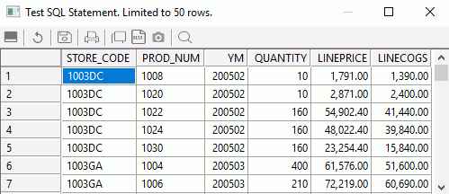 Note: You can set the number of rows retrieved from the Options dialog box in the Run Options pane. The default is 50 rows.