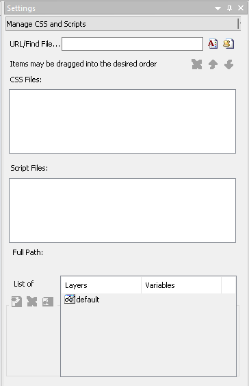 external cascading style sheet files and JavaScript files. The Settings panel displays this section