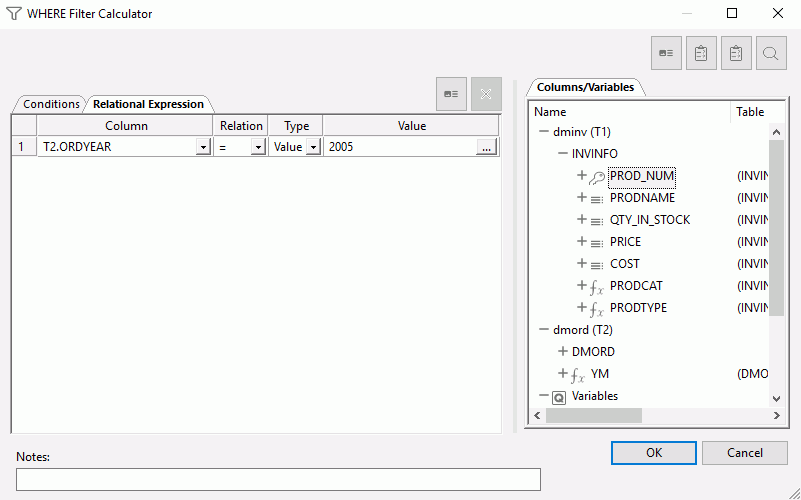 Note: If the Relational Expression tab is not selected, click on it to select it.