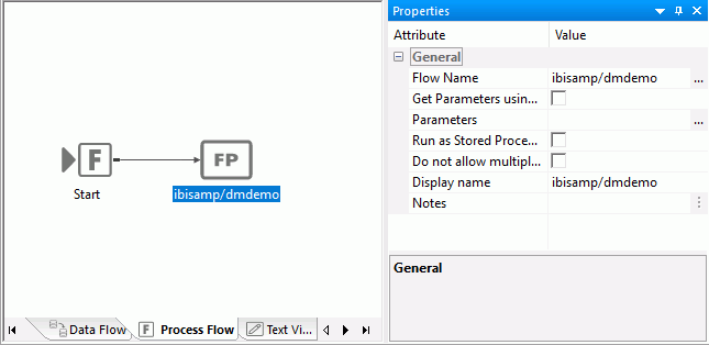 Right-click the Start icon, drag a line connecting to the data flow icon, and release. Then double-click the data flow icon to open its properties, as shown in the following image.