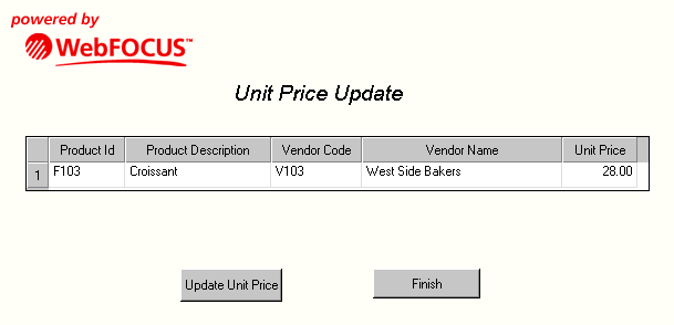 The following report allows you to update the unit price for a product directly from the report output by linking the report to the appropriate Maintain procedure.