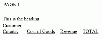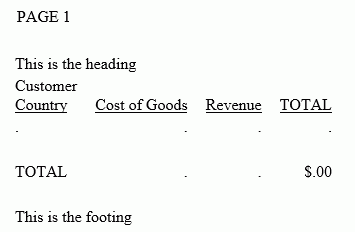 SET EMPTYREPORT=OFF TABLE FILE WF_RETAIL_LITE HEADING "This is the heading" SUM COGS_US REVENUE_US COLUMN-TOTAL ROW-TOTAL BY COUNTRY_NAME WHERE COUNTRY_NAME EQ 'Louisiana' FOOTING "This is the footing" ON TABLE SET STYLE * GRID=OFF,$ END