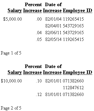 ENDTABPAGENO inserts the page number in the sort footing. The first page of the report is: