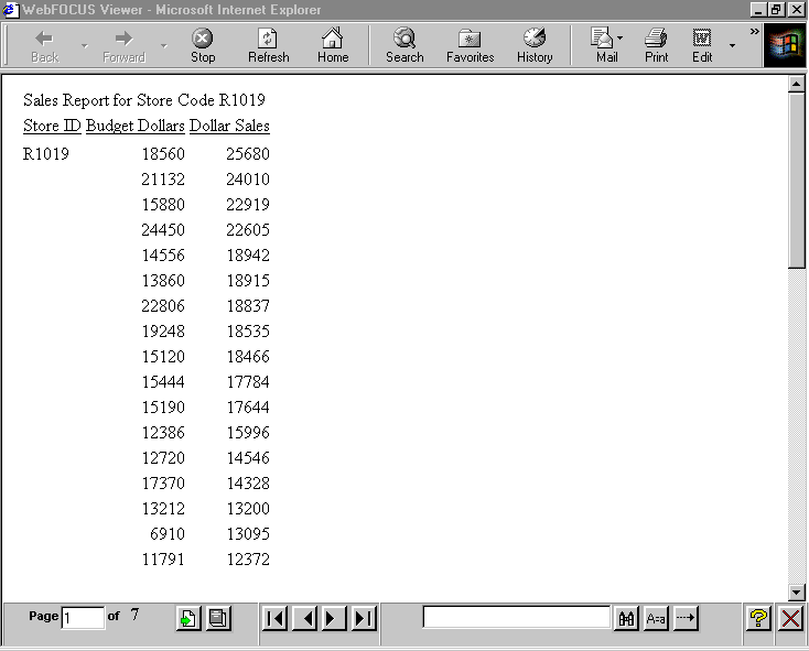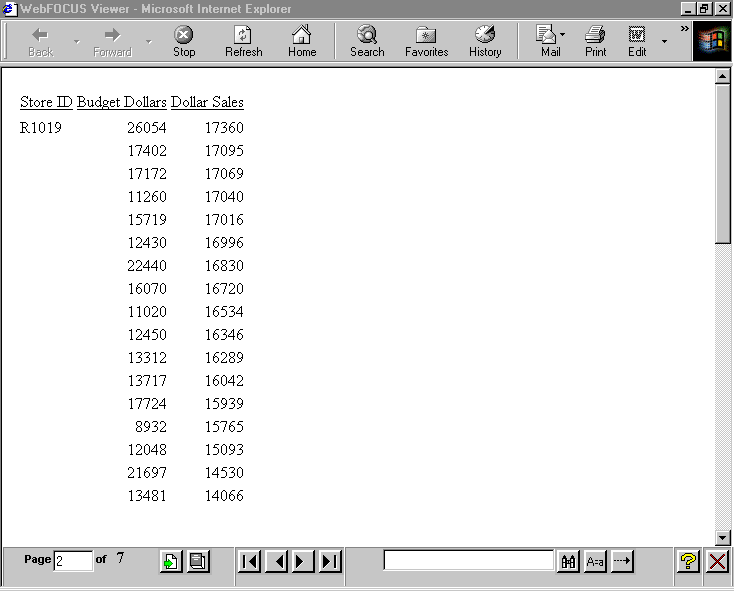 Note: When the browser is manually resized after initial display of the HFREEZE report, the HFREEZE report size remains the same. Select the browser refresh option to reload the HFREEZE report, which will run the JavaScript that calculates the HFREEZE report size within the current page or frame.