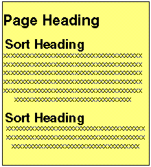 A sort heading is text that precedes a change in a sort field value, identifying the beginning of a group of related data. A sort footing is text that follows a change in a sort field value, identifying the end of a group of related data.