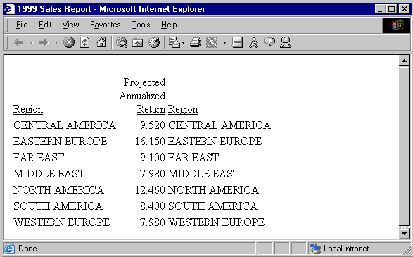 TYPE=REPORT, TITLETEXT='1999 Sales Report', $