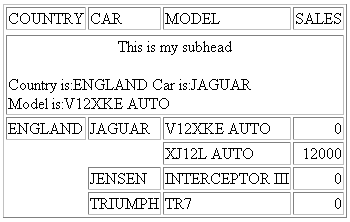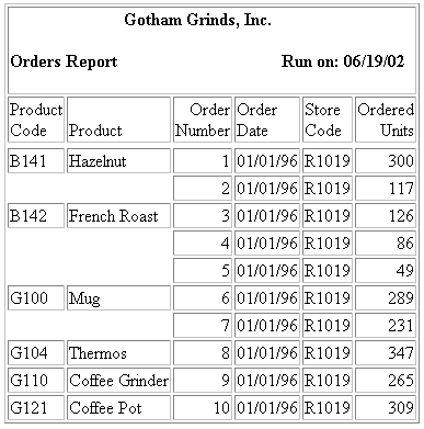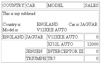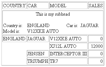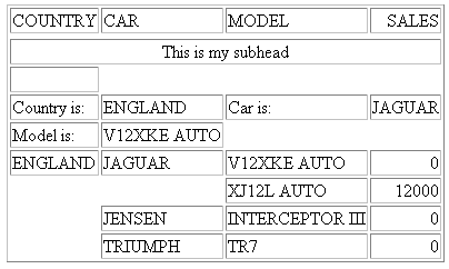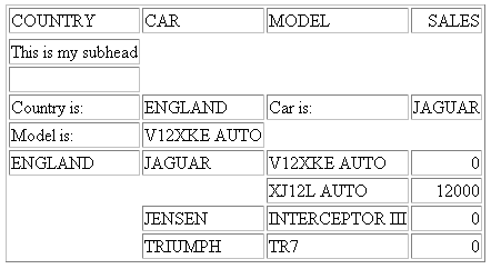The requests that follow illustrate the differences in alignment with each HEADALIGN setting. The grid lines are exposed in the output to help distinguish the HTML table created for the body of the report from the embedded HTML tables created for the heading in some variations.