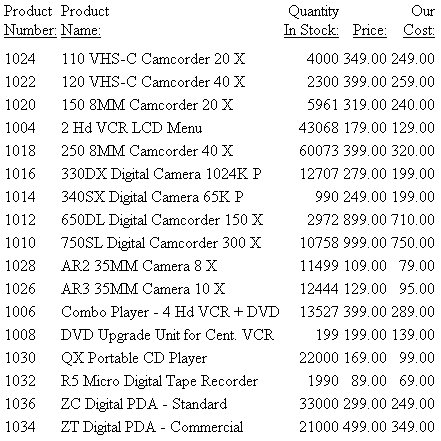 The following request produces a report displaying all of the fields in the segment that contains the QTY_IN_STOCK field.