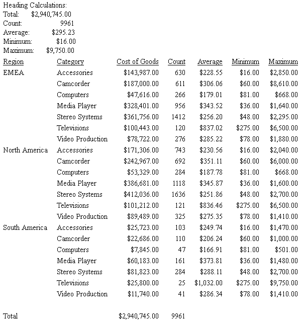 • They can be used in subheadings and subfootings to reference the total value for the entire report.