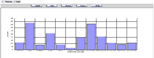 The following OLAP request against the EMPLOYEE data source has two BY fields. To merge the graphs, the SET OLAPGRMERGE=ON command is issued: