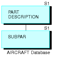 The data source must record each part, the part description, and the smaller parts composing the part. Some parts, such as nuts and bolts, are common throughout the aircraft. If you design a three-segment structure, one segment for each level of parts, descriptions of common parts are repeated in every place they are used.