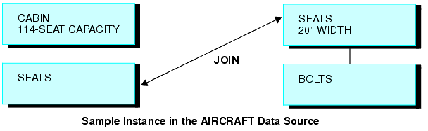This example explains how to use recursive joins to store and report on a bill of materials. Suppose you are designing a data source called AIRCRAFT that contains the bill of materials for an aircraft manufactured by a company. The data source records data on three levels of airplane parts: