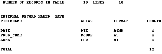ON TABLE SAVB [AS filename] [MISSING {ON|OFF}]or