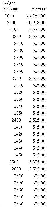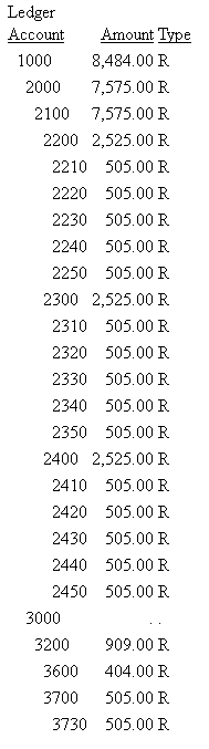 ENDPartial output is shown in the following image. The accounts are indented to show the hierarchical relationships: